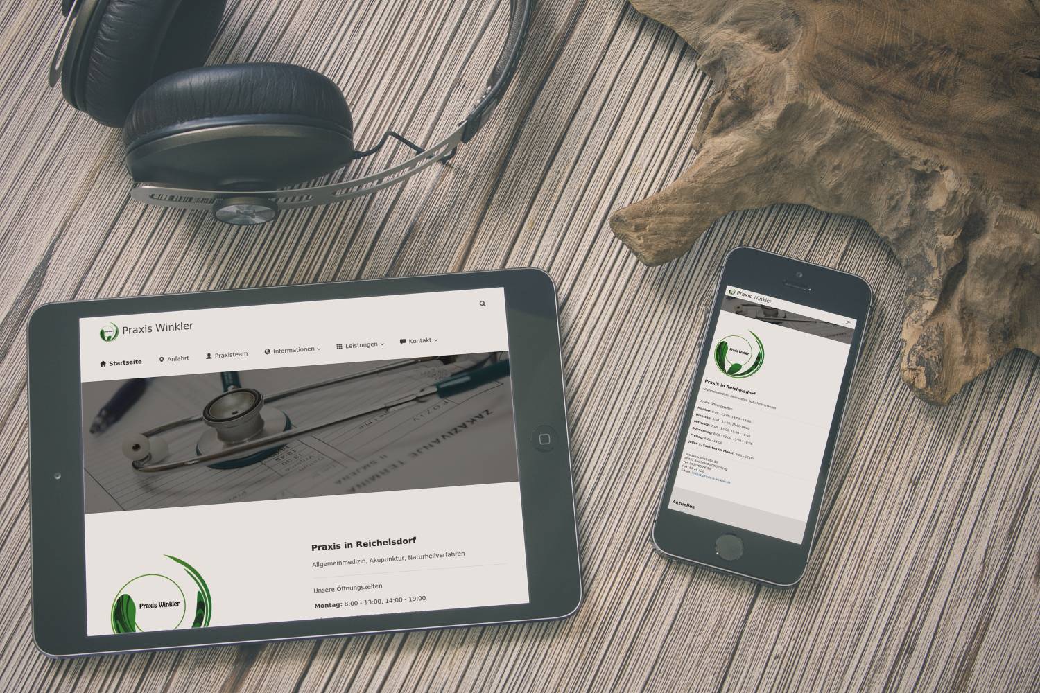 Die Aufgabe: Erstellung eines neuen Corporate Designs, inklusive Logo, Webseite, Visitenkarte und neuer technischer Infrastruktur für die Allgemeinarztpraxis "Praxis Winkler" in Nürnberg Reichelsdorf.